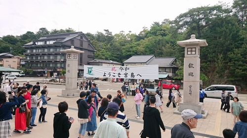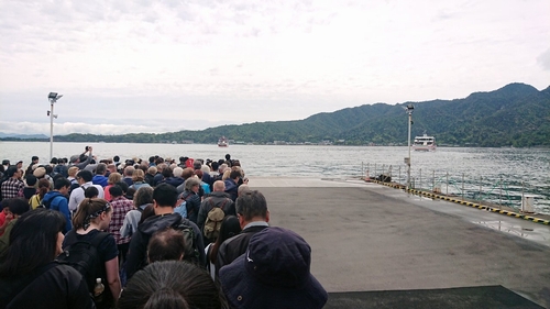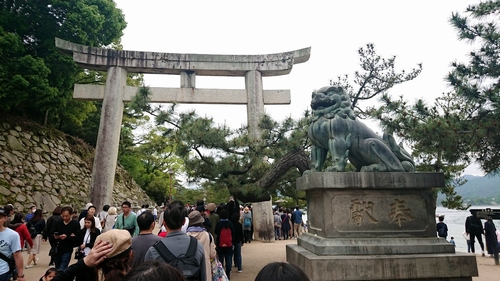 厳島神社・豊国神社。 GW中、何も考えずにただ行きたいというだけで厳島神社へ行ってきました。 しかし5月1日。 そうです、改元日。 とにかく人・人・人・・・。 松山から始発で宮島口を目指し、到着したのが9時半。 フェリー乗り場は切符を求める人の行列。 しかしながら、あって良かったSuica。 切符を買わずにフェリーを乗船するための列に並べます。 フェリー乗り場は勿論大行列ですが、フェリーの運航間隔が短いのと数百人単位で乗船できるので乗り込むまでにそんなに時間がかかりませんでした。 宮島に到着すると「祝 令和」の横断幕。 そして目に飛び込んできた人の行列・・・。 厳島神社に参拝するために並んでいる人が、フェリー桟橋の前まで連なっていました。 この時点で参拝まで2時間待ちのアナウンスが。 並ばないという選択肢はないので、鹿を横目に並びました。 結局1時間半くらいで本殿に到着。 やはり大鳥居は迫力があります。 折角なので御朱印もと思ったら、こちらの行列も物凄い事に。 最後尾をお知らせしている職員の方も前代未聞のことなので、何時間待ちなのか、並んでも御朱印を授与できるのかも答えられないと困惑しておられました。 広島市内に戻って観光するつもりでしたが、全て取りやめて並びました。 本を読みながら4時間並んでいただいた御朱印です。 また、拝観料を払った先で特別なしゃもじもいただきました。 折角なので、宮島で時間が許す限り観光しようと思い、五重塔がシンボルの豊国神社・千畳閣にも昇殿参拝してきました。 板敷でひんやりとしており、丘の上にあるので風が通り抜けてとても気持ちが良かったです。 1日ずっと御朱印を書き続けていたため書くのが相当辛そうで申し訳なかったのですが、こちらでもいただいてきました。 今度はここまで人がいない時に、ゆっくり観光したいです。 もちろん帰りのフェリーに乗るのにも大行列・・・。 厳島神社 広島県廿日市市宮島町1−1 豊国神社 千畳閣 広島県廿日市市宮島町 参拝日:2019-05-01 PR