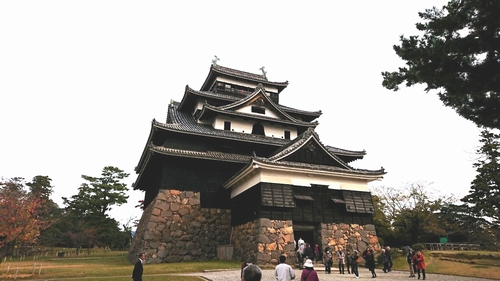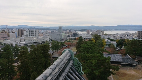 松江神社。 国宝・松江城。 堀に囲まれた敷地はかなりの広さですが、天守は見た感じ小さいなぁという印象。 天守からは宍道湖が見えます。 その手前、史跡にあるのが松江神社です。 偶然訪れたのが神在月だという事もあり、日付にも神在月と記していただきました。 松江城周辺は名物料理も沢山ありました。 これは松江城のそば松江護国神社の近くに有る甘味処で食べられる「ぶぶだんご」。 すや(白)・よもぎ(草)・紫芋の3種類があり、更に上に塗る餡はこし餡と味噌餡から選べます。 屋外にある炭火で焼いた出来立てをいただけるのですが、見た目に反してふわっふわの食感で面白いお団子です。 普通の草餅を想像していると裏切られます。 こちらは有名な出雲蕎麦(割子蕎麦)。 3段もあるのにペロリと食べられちゃいます。 松江神社 島根県松江市殿町1番 参拝日:2018-11-16