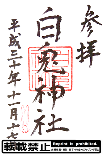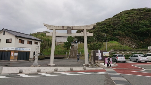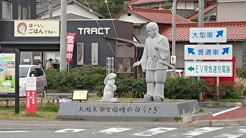 白兎神社。 日本書紀に記された神話で有名な「因幡の白兎」。 その白兎を主祭神として祀っているのがこちらの白兎神社です。 鳥居の前には神話の一部分を切り取った立派な石像が作られています。 石階段の参道の両脇にもずらっと兎の石像が並びます。 兎の毛皮が剥ぎ取られて怪我をしていたところを大国主命に助けられたという神話から皮膚病など医療にご利益があるのことですが、古事記にある一節、兎が大国主命へ求婚成功の予言をしたという部分から近年では縁結びの御利益を押しているみたいです。 若い女性やカップルが沢山参拝に来られていました。 神社の前に広がる白兎海岸には、白兎がいたとされる淤岐島があり、鳥居が建てられています。 瀬戸内海で育った者には、日本海の海の荒々しさや風の強さに圧倒されました。 白兎神社 鳥取県鳥取市白兎603番地 参拝日:2018-11-17