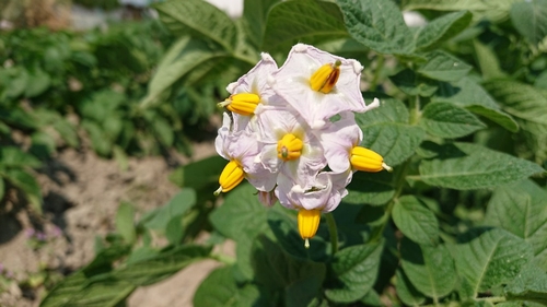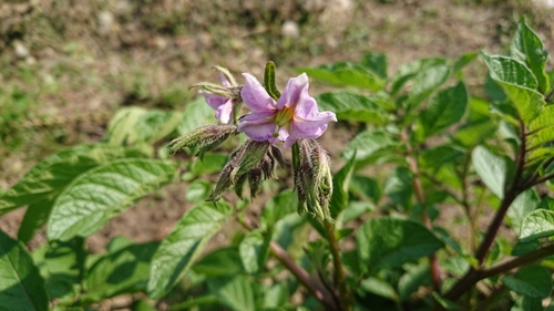 ジャガイモの花が咲いてきたので、二度目の土寄せをしてきました。