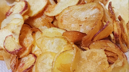 ポテトチップスを作る際に気を付けることは、パリパリにしたいならなるべく薄くスライスし、切り口についているデンプン質を洗い流して綺麗にすると上手くできました。