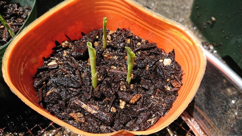 育苗用ポットに2・3粒播きで、発芽までに1週間前後。