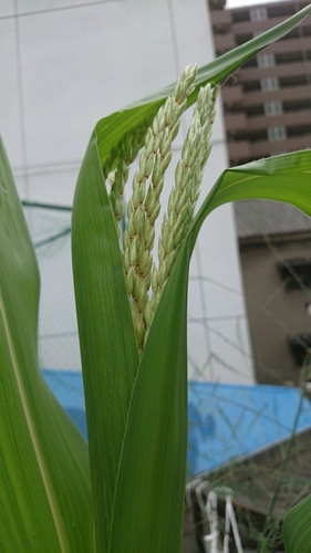 農園ではやはりトウモロコシは人気の夏野菜ということもあり他の区画でもかなり育てられていたのですが、様子見を繰り返し他の区画の雄穂が出る時期がなるべくズレるように植え付けてみました。