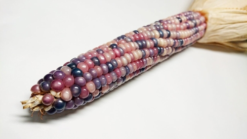 一般的なスイート種のトウモロコシは受粉後20日程度で収穫ですが、グラスジェムコーンは発色を良くするために、外皮が枯れるまで放置しなければなりません。