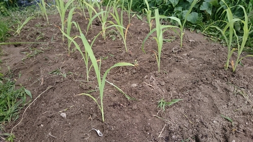 トウモロコシの植え付け。 ジャガイモを収穫した後に、ビニポットで育てていたトウモロコシの苗を植え付けました。 時期的には遅いのですが、ジャガイモの生育状況と天候の関係でこの時期に。 株間を約30センチ、3条で千鳥植えで受粉がし易いように密集気味で植えてみたのですが、他の畑の区画でもトウモロコシを育てている方がチラホラ。 交雑してしまう可能性がありますね。 こちらは黒皮スイカです。 黒い皮の中にうっすらと縞模様が見えるのが面白いですね。 底になっていて日に当たっていない部分を移動させながら、順調に育っています。 大玉トマトも今のところ実割れをすることなく、赤く熟しています。 そろそろ収穫ですね。 松山は最高気温が35度の猛暑日でした。 熱中症には十分気をつけてください。 PR
