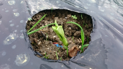 畑の様子。 寒くなってきましたが、畑では冬野菜と春に収穫する野菜が育ってきています。 こちらはニンニクです。 育てやすくて以前はプランタで育てていたのですが、畑でチャレンジしています。 ニンニクはそのまま保存するのは勿論、オイル漬けや醤油漬け、皮を剥いて冷凍保存がきくので多めに育てています。 鱗片が大きく育つホワイト種の種ニンニクで育てているのですが、少しだけ農産直市で売られていた普通の紫ニンニクを植えてみました。 病気の心配は有りますが、芽が出ないような処理がされていないだろうということで実験的に植えてみましたが、普通の種ニンニクと遜色なく今のところ元気です。 どのようなニンニクが収穫できるのかが楽しみです。 上は春菊、下が大根です。 春菊はベビーリーフくらい、大根は二十日大根程度の大きさでまだまだですね。 こちらは空豆です。 雨が多かったり、急に寒くなったりで心配しましたが、何とか発芽してくれました。 無事に越冬して欲しいです。 PR