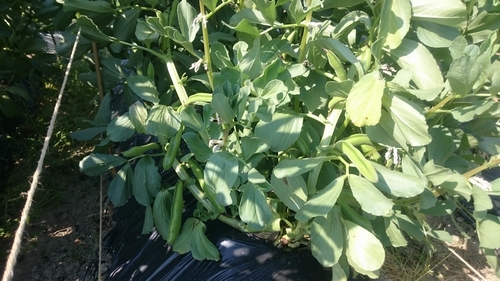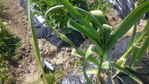 ニンニクのトウ立ち。 にんにくのトウが立ってきました。 ニンニクを育てるのが好きな理由は、2度収穫作業が出来る事です。 初夏にニンニクを収穫する前に、この花芽、いわゆるにんにくの芽を収穫することができるからです。 スーパーでも一年中売っているにんにくの芽ですが、ほぼすべてが中国産で、国産の物を見かけることは有りません。 家庭菜園だから手に入る国産のにんにくの芽は、この時期にしか味わえない旬の素材ですね。 こちらも旬の時期が非常に短い空豆。 うちの畑の物もだいぶ成長し、莢が膨らんできました。 そろそろ収穫です。 空豆自体極端に短い期間しか口に出来ない野菜ですが、そのなかでも皮が柔らかい出始めの空豆は特に貴重で美味。 収穫が待ち遠しいです。 ジャガイモも成長中。 同じ日に3種類を植え付けましたが、最も芽が早く出て勢いが良いのが中晩生のアンデスレッド。 次に早生のとうや。 芽が出るのが最も遅く、まだ葉の背丈も小さいのが中早生のピルカです。 それぞれに成長の差があり、また葉の形も違うのが面白いですね。 どのような花を咲かせるのかも楽しみです。