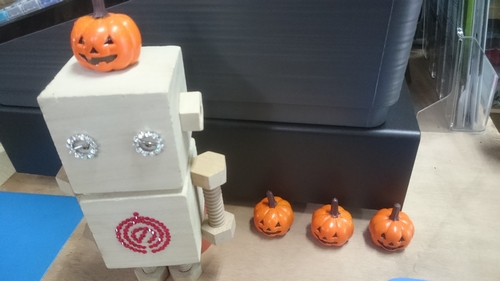 今治タオルのカラー軍手で作ったぬいぐるみも、ハロウィン用の仮装をしております。