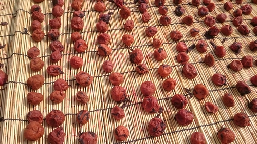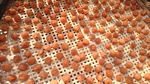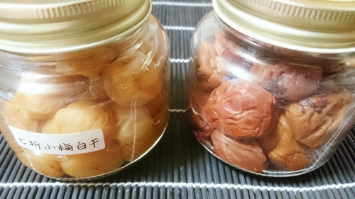 土用干し。 梅雨も明け、しばらくお天気が続きそうだったので梅雨前から漬けていた梅を土用干ししました。 こちらは愛媛県産南高梅を赤紫蘇漬けにしたもの。 こちらは愛媛県砥部町の特産品の一つ、「七折小梅」という梅を白漬けにしたものです。 ひとつひとつ、皮が破れないように並べるのも一苦労、そしてそれをひっくり返すのも一苦労でした。 梅干しは日干しを3日間・夜干しを3日間、つまり三日三晩干すそうなのですが、あまり水分が飛んでしまってカラカラになるのは好きではないので、今回は日中干して夜は梅酢に戻し、もう一日干すというようにしました。 味が馴染むまで数か月、気長に待ちたいと思います。 PR