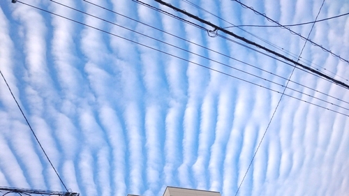 ふと空を見上げると等間隔に並んだ筋状の雲が。